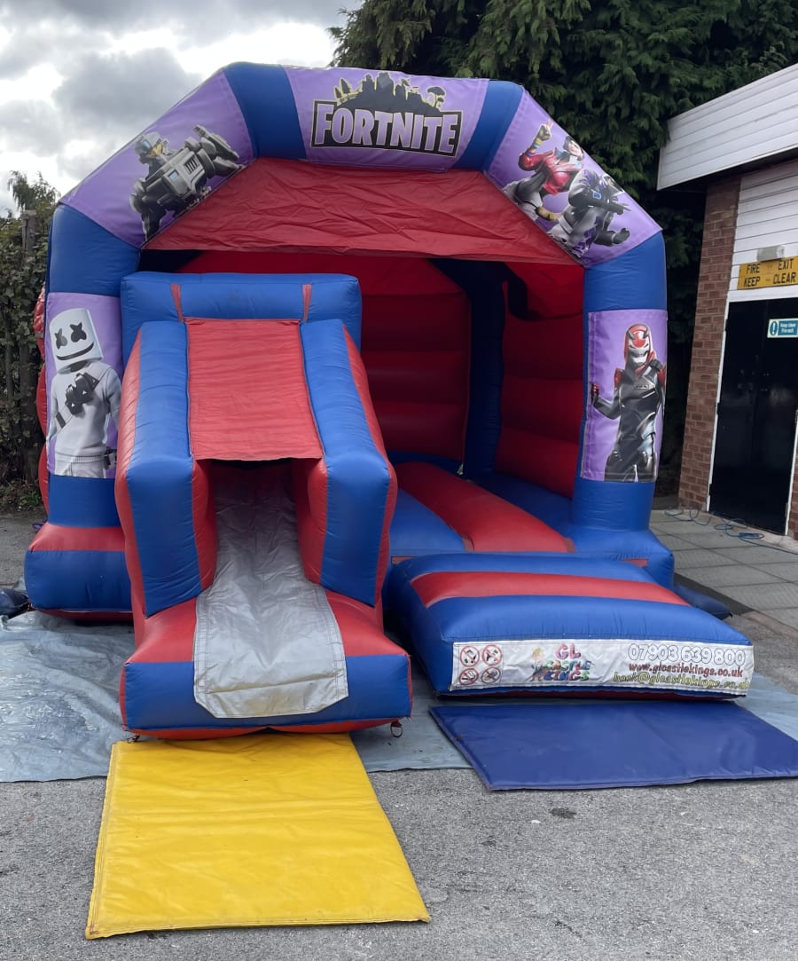 The Very popular Fortnite bouncy castle & slide combi! Impress your child with this stunning bouncy castle that will look amazing at any party. Getting bored of just a standard bouncy castle then why not try this castle that comes with a slide for extra fun when on the castle