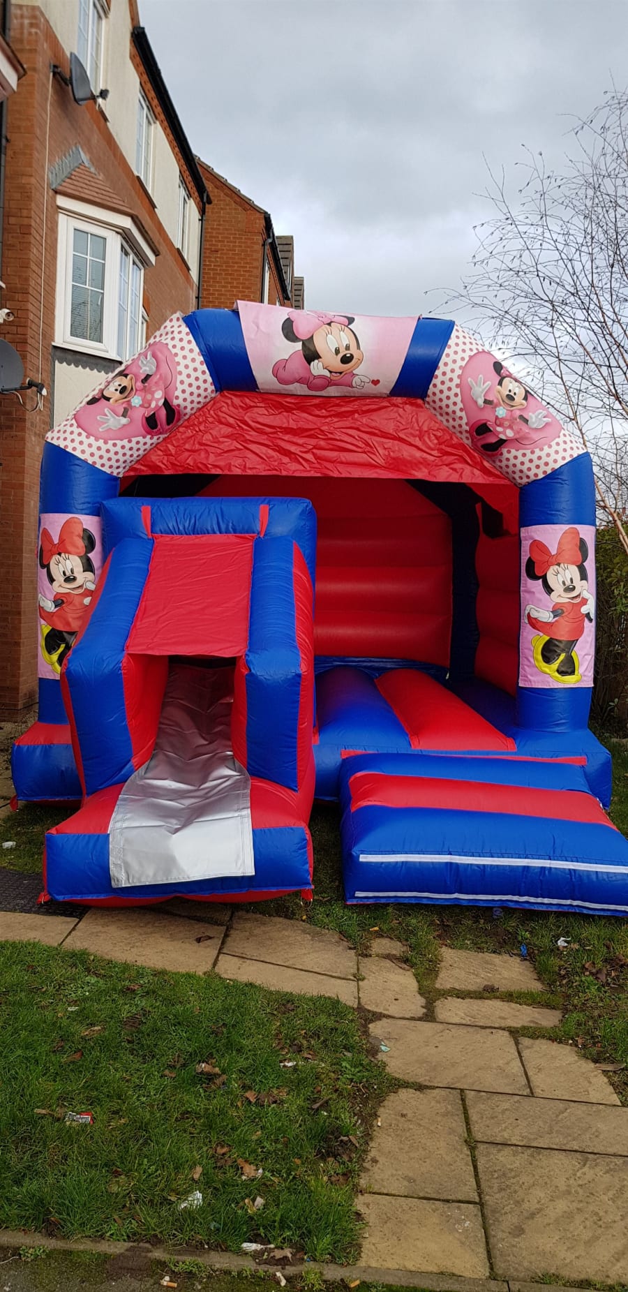 The Very popular Minnie Mouse bouncy castle & slide combi! Impress your child with this stunning bouncy castle that will look amazing at any party. Getting bored of just a standard bouncy castle then why not try this castle that comes with a slide for extra fun when on the castle