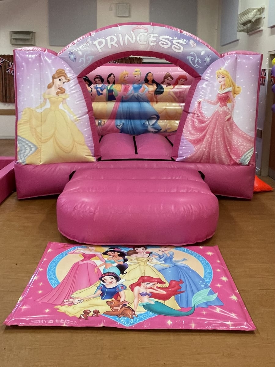 The Very popular & very pink princess castle! Impress your child with this stunning bouncy castle that will look amazing at any party. Our number one popular castle for 2023 for sure... (the princess mat in photo is for indoor venues only)