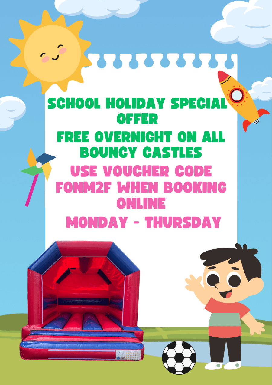 Enjoy the school holidays with our free overnight offer on all bouncy castles Monday - Thursday & keep the kids out the house