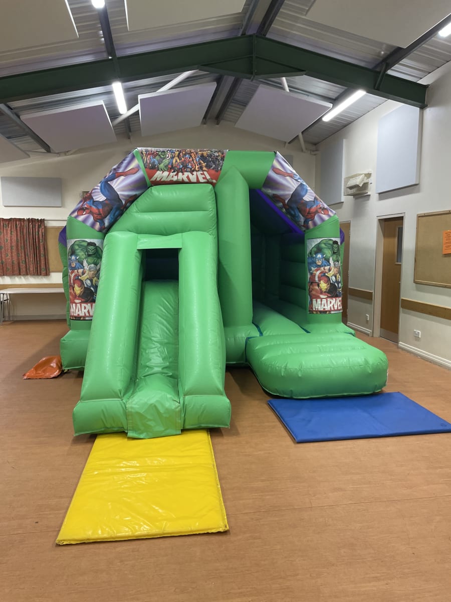 The Very popular Avengers bouncy castle & slide combi! Impress your child with this stunning bouncy castle that will look amazing at any party. Getting bored of just a standard bouncy castle then why not try this castle that comes with a slide for extra fun when on the castle
