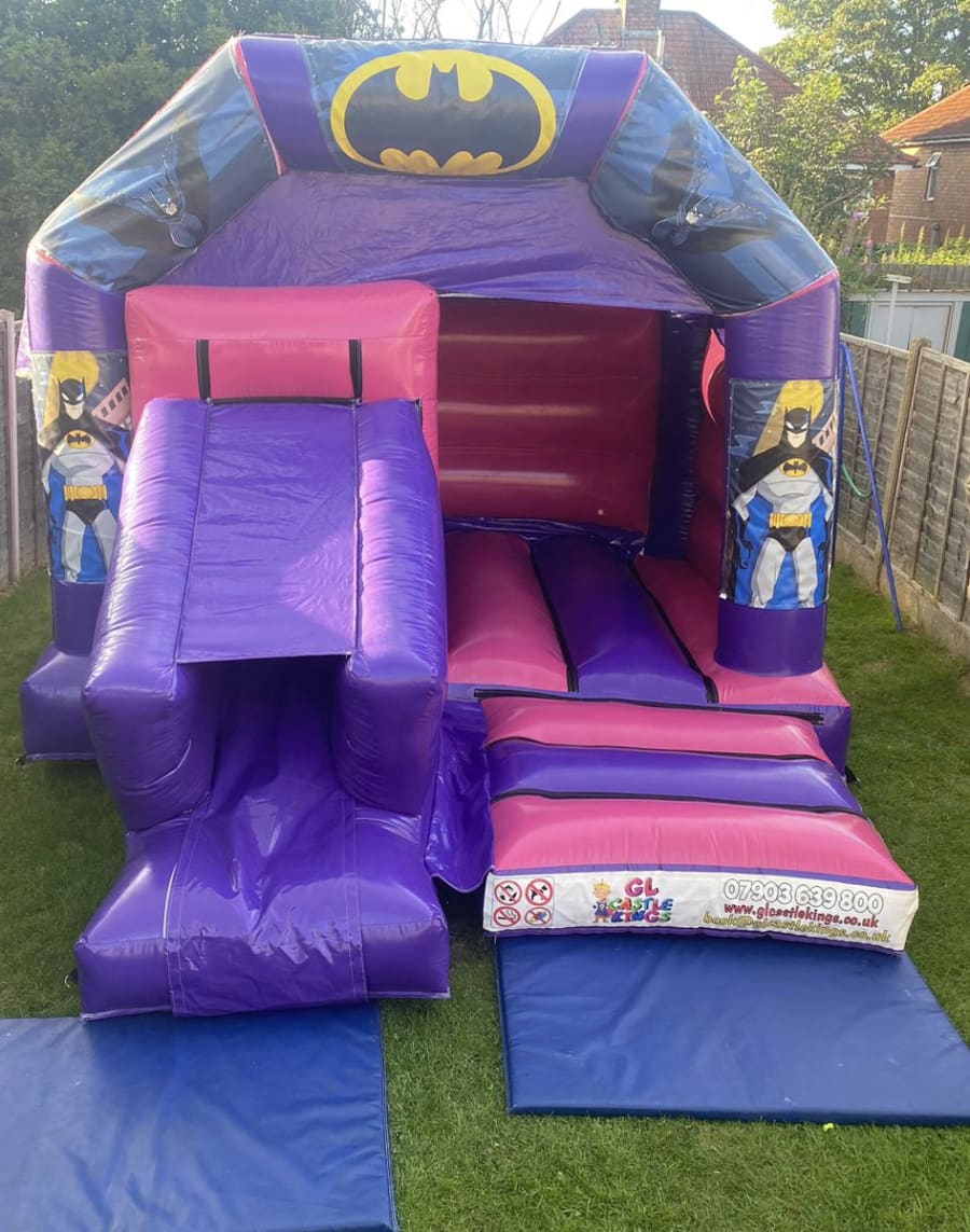 The Very popular Batman theme bouncy castle & slide combi! Impress your child with this stunning bouncy castle that will look amazing at any party. Getting bored of just a standard bouncy castle then why not try this castle that comes with a slide for extra fun when on the castle