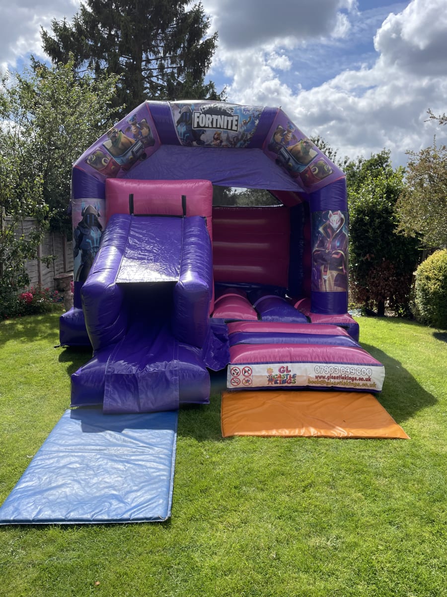 The Very popular Fortnite theme bouncy castle & slide combi! Impress your child with this stunning bouncy castle that will look amazing at any party. Getting bored of just a standard bouncy castle then why not try this castle that comes with a slide for extra fun when on the castle