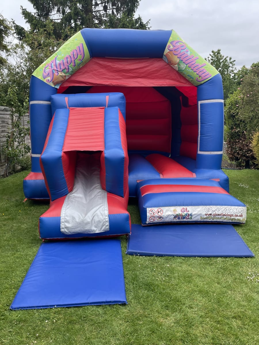 The Very popular Happy Birthday themed bouncy castle & slide combi! Impress your child with this stunning bouncy castle that will look amazing at any party. Getting bored of just a standard bouncy castle then why not try this castle that comes with a slide for extra fun when on the castle