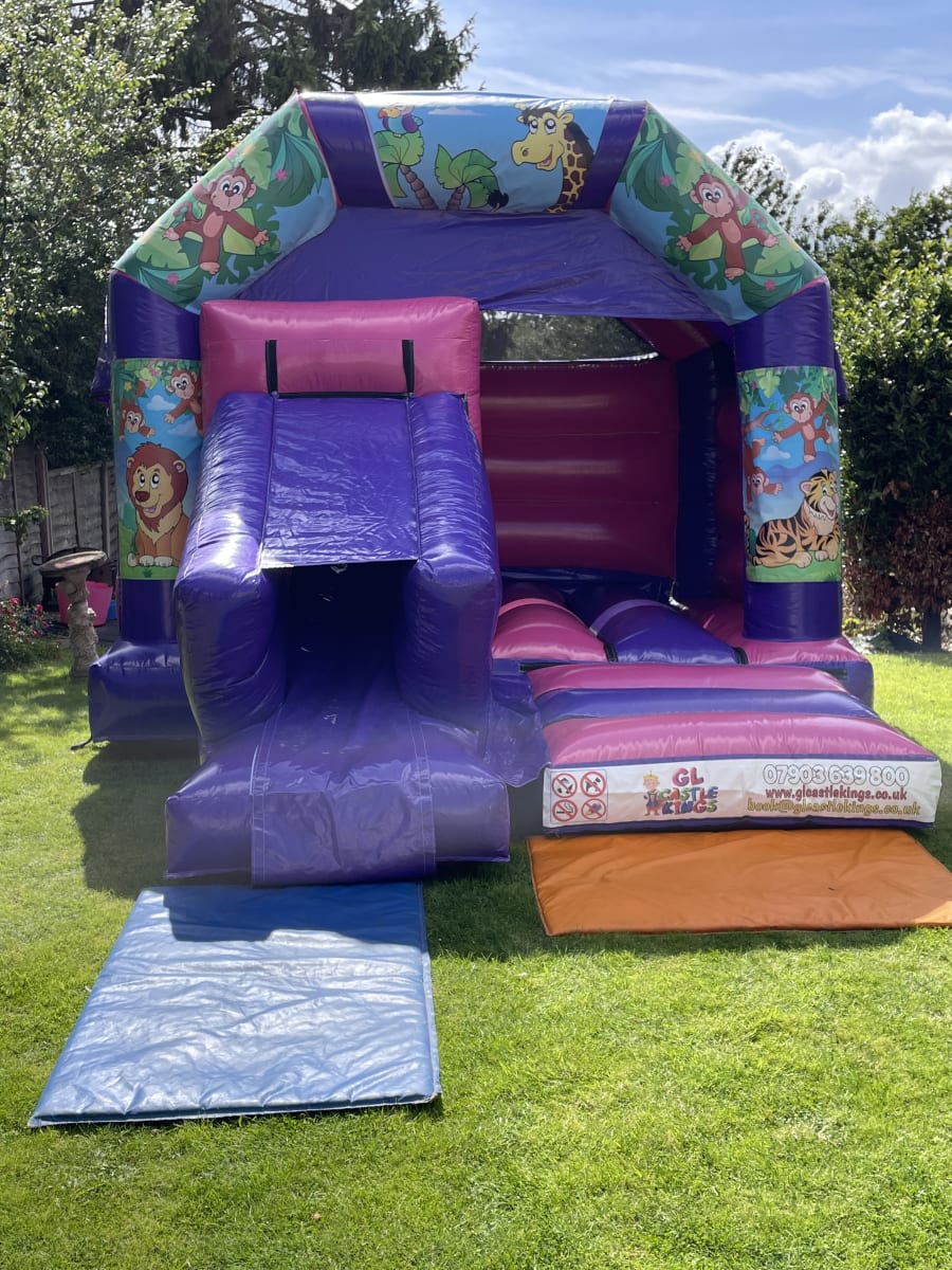 The Very popular Jungle theme bouncy castle & slide combi! Impress your child with this stunning bouncy castle that will look amazing at any party. Getting bored of just a standard bouncy castle then why not try this castle that comes with a slide for extra fun when on the castle
