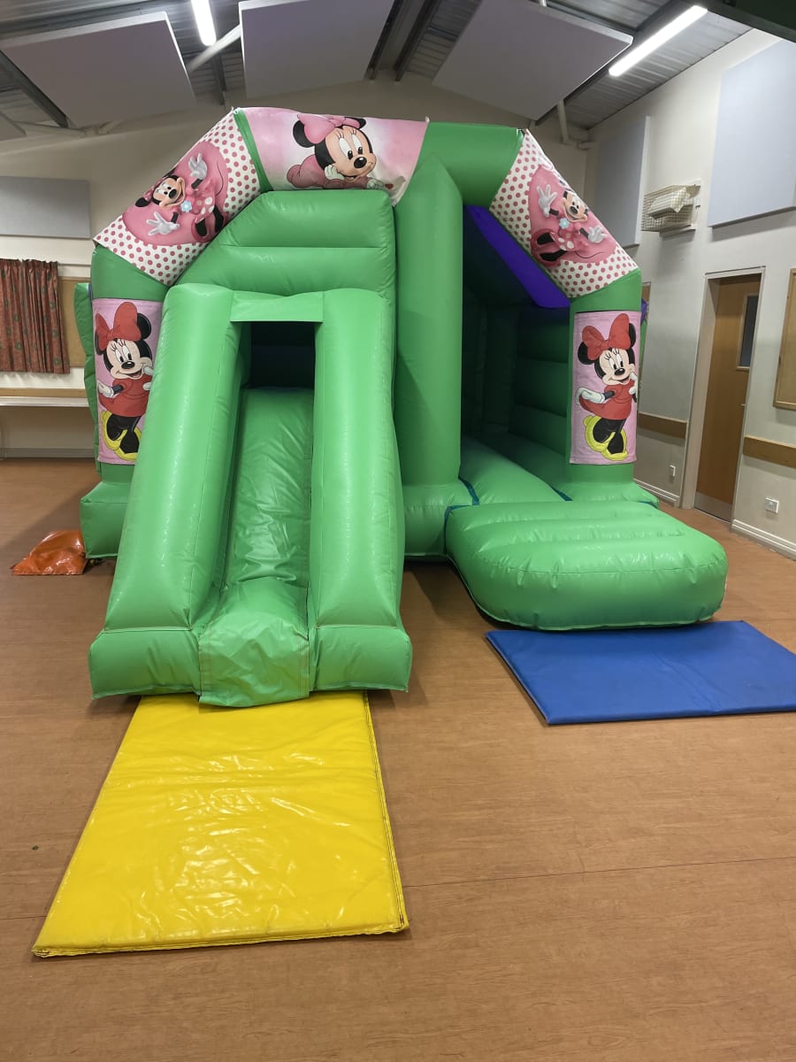 The Very popular Minnie Mouse bouncy castle & slide combi! Impress your child with this stunning bouncy castle that will look amazing at any party. Getting bored of just a standard bouncy castle then why not try this castle that comes with a slide for extra fun when on the castle