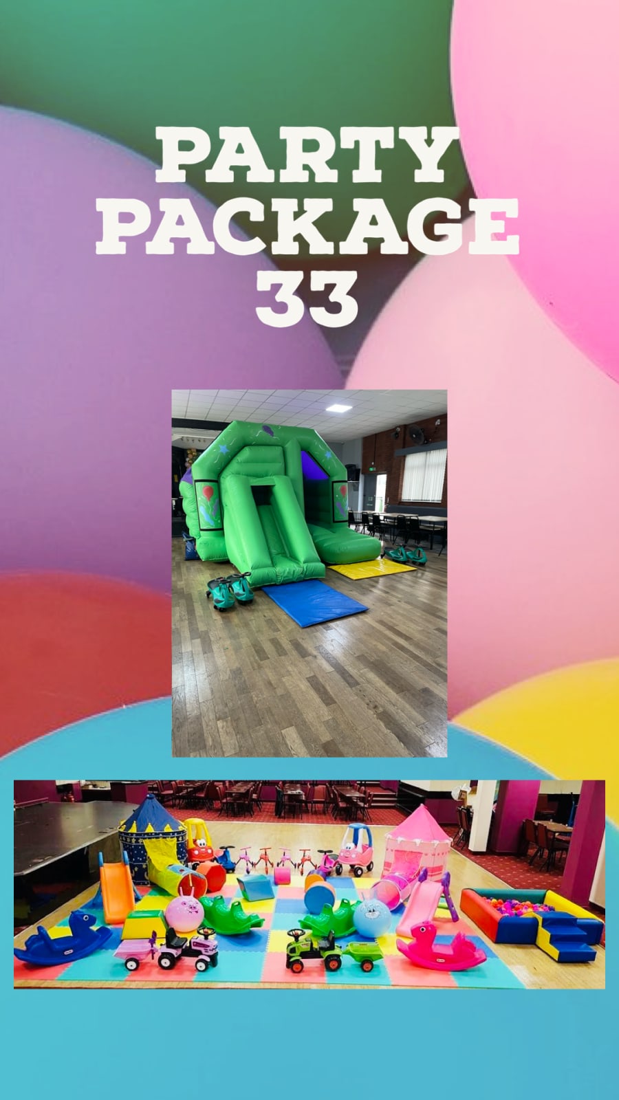 Included in the price is complete setup & packing away. Delivery/Collection of the party package would be to suit your party times needed. This party package is for indoor venues only